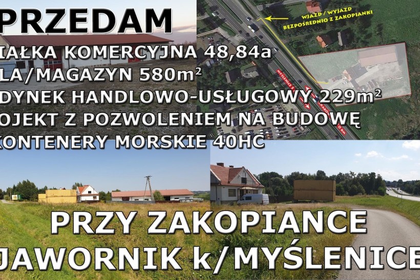 OKAZJA! Działka komercyjna 48,84a Hala Biura - Jawornik k/Myślenice