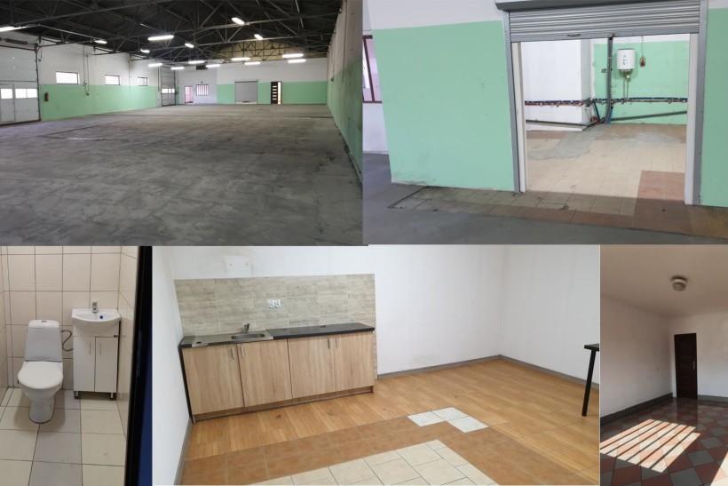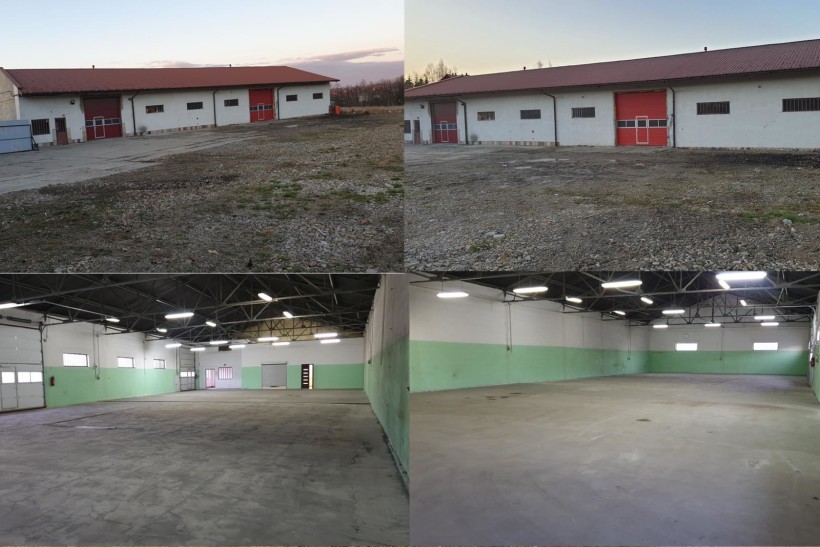 - 2 bramy przemysłowe automatyczne (3,4 m szer. * 3,75 m wys. oraz 4 m szer. * 3,8 m wys.)