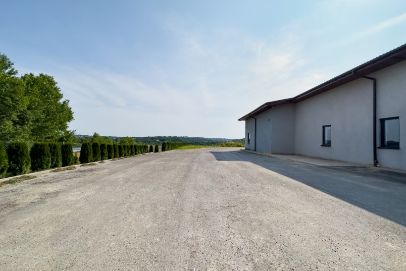 Cały teren jest ogrodzony. Wjazd bezpośrednio z drogi publicznej, zabudowany elektrycznie otwieraną bramą wjazdową. Wzdłuż budynku plac utwardzony o dużej powierzchni, co umożliwia wjazd i manewrowanie TiRom.