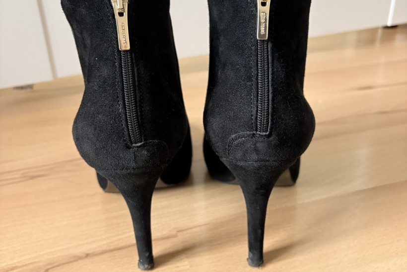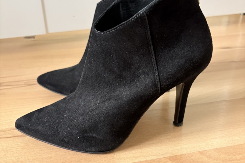 Eleganckie czarne botki Gino Rossi, rozmiar 39. Klasyczny, zgrabny fason ze szpicem i smukłym obcasem 8 cm pięknie wygląda na nodze i pasuje zarówno do sukienki, jak i spodni. Świetna opcja na wyjścia, do pracy lub na specjalne okazje. Kolor na zdjęciach jest bledszy niż w rzeczywistości.