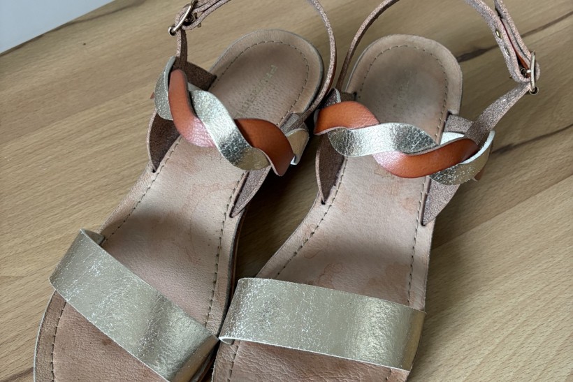 Letnie sandałki w pięknym połączeniu złota i karmelowego brązu. Bardzo ładny, kobiecy model na niskim słupku (3cm), wygodny na co dzień i świetny także do sukienek, szortów czy lnianych stylizacji. Lekkie, efektowne i idealne na lato. Skóra naturalna.