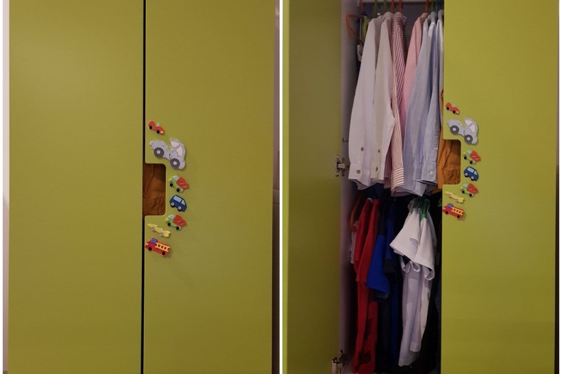 Modułowe meble do pokoju dziecięcego można dowolnie ze sobą łączyć i personalizować. Łóżko jest dwustronne- może być lewe bądź prawe w zależności od potrzeb. Wyposażone jest w barierkę ochronną zabezpieczającą dziecko przed wypadnięciem. Zagłówek o przednóżek posiadają nadruki auta.