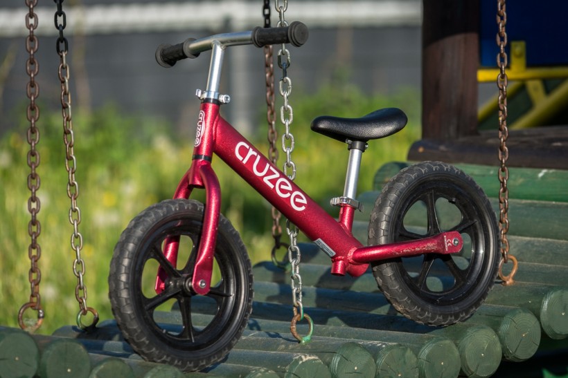 Rowerek biegowy Cruzee - pełen komplet sklepowy (rowerek, pudełko, 2 sztyce) + kask. Niewielkie zadrapania na goleniach przedniego koła i podnóżkach, poza tym stan bardzo dobry. Idealny jako pierwszy rower dla kilkulatka. Niewielka waga (1,8 kg) ułatwia manewrowanie.