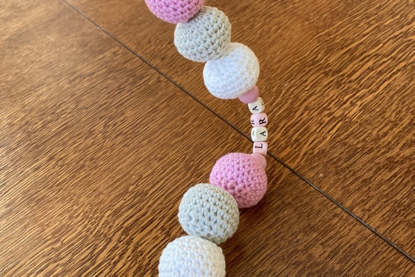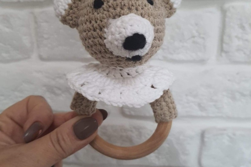 Wykonuje ozdoby, gryzaki, misie, kocyki, zawieszki do smoczka z imieniem, grzechotki, koszyczki itp z włoczki hipoalergicznej.