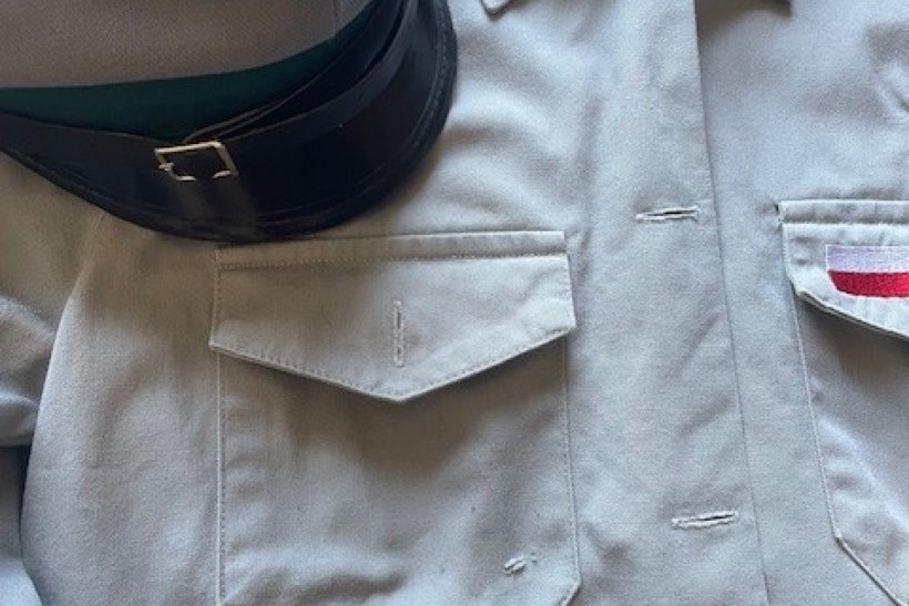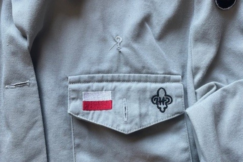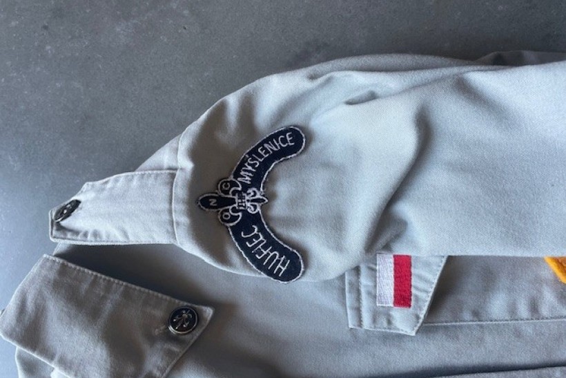 - bluza mundurowa zhp z naszywką "Hufiec Myślenice" (na bluzie dwie małe dziurki od przypinek - foto - nie przeszkadza w użytkowaniu, można zasłonić przypinkami)