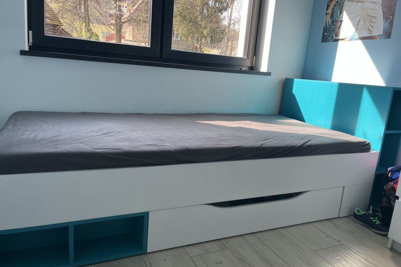 Sprzedam łóżko wraz z szafką i półka stan bardzo dobry