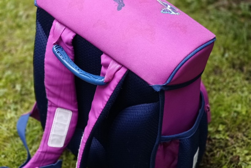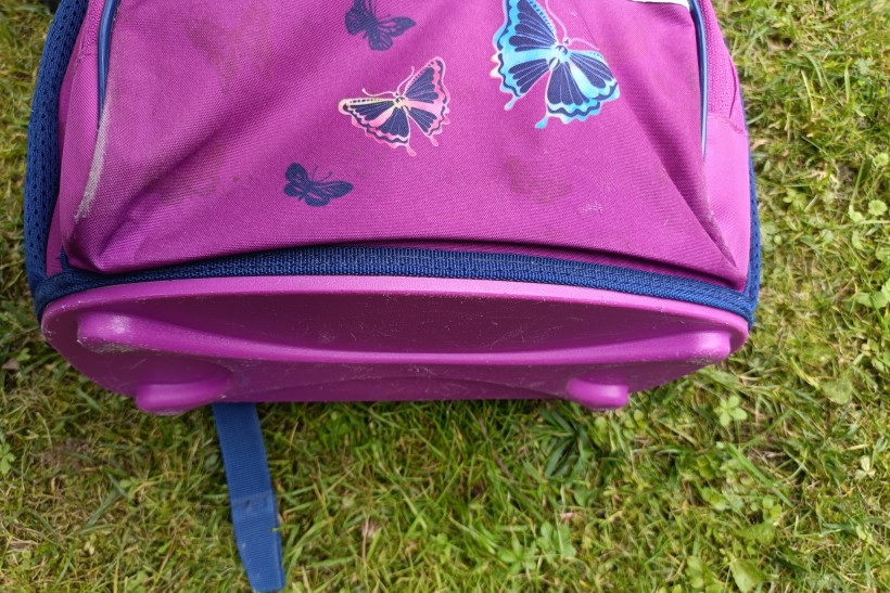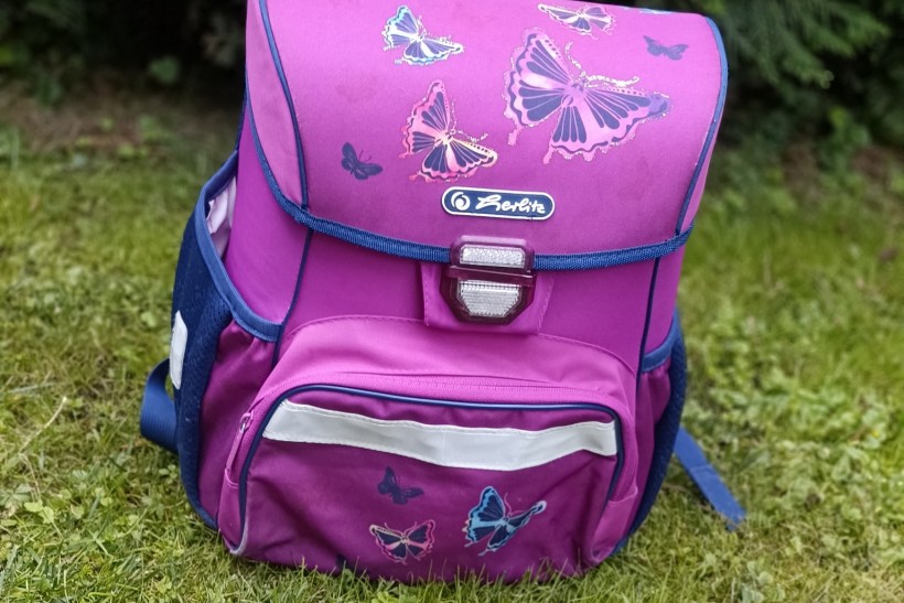Plecak jest używany, po 1 dziecku. Widać delikatne zmechacenia i przetarcia, ale plecak jest w stanie dobrym +. (Widać to na zdjęciach) Plecak jest bardzo wytrzymały. Odporny na plamy. Ma dodatkowe zapięcie na brzuchu dla stabilizacji. Jest sztywny. Ma odblaski. Wzór to motylki.