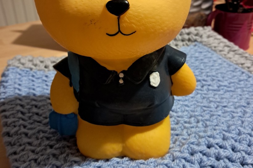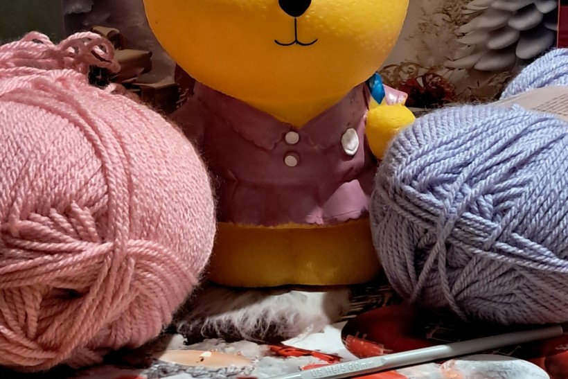 Jest to mały ciepły i miękki kocyk szydełkowy oraz skarbonka.