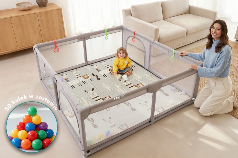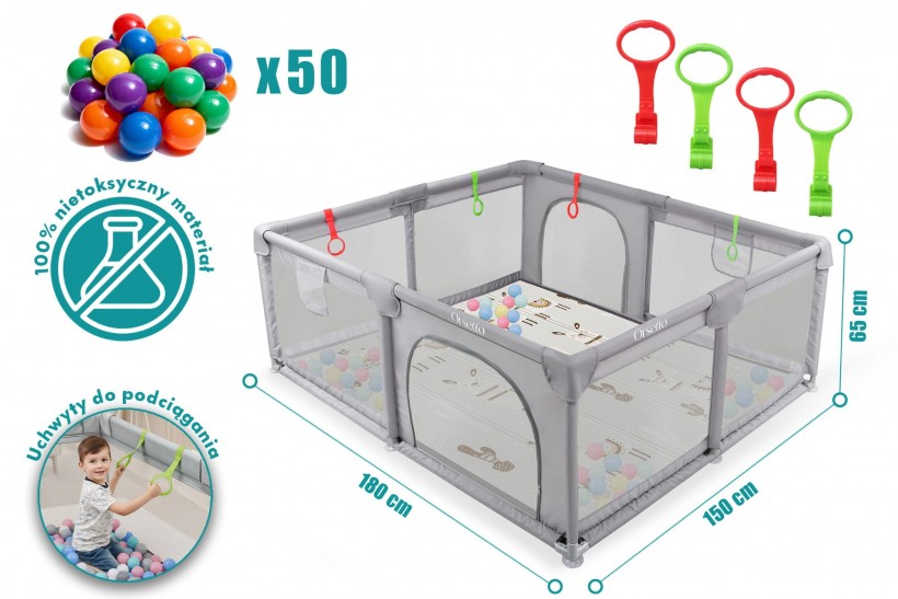 Sprzedam nowy kojec dziecięcy duży 150x180 cm z edukacyjną matą piankową, czterema uchwytami dla dzieci i 50 kolorowymi piłeczkami do zabawy! W zestawie znajduje się edukacyjna mata piankowa o grubości 1 cm, która jest doskonała do zabawy i nauki. Kojec posiada również cztery uchwyty, które pomagają dziecku w podciąganiu się i stawianiu pierwszych kroków. Dodatkowo dołączono 50 plastikowych, kolorowych piłeczek, które zapewnią dziecku mnóstwo radości.