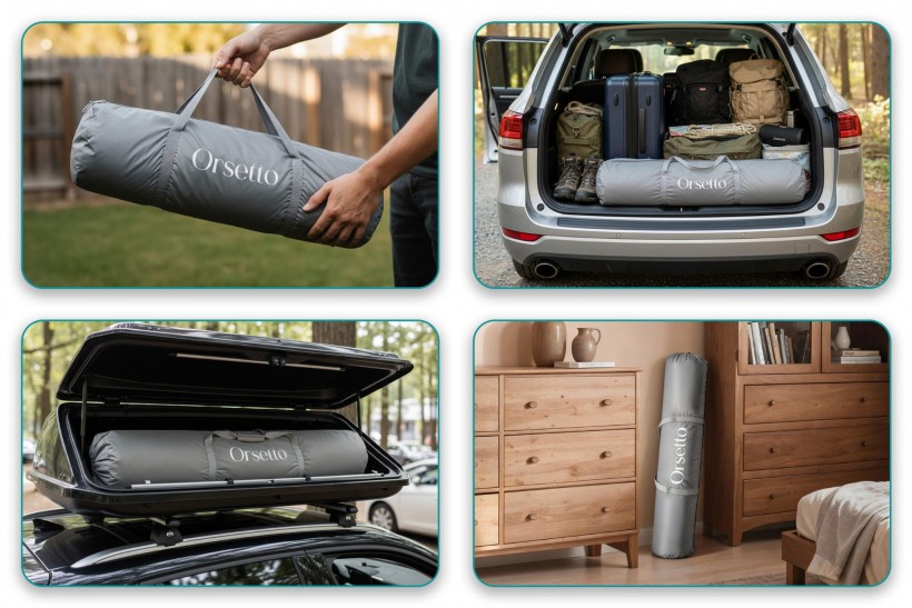 Do zestawu dołączona jest także poręczna torba, która umożliwia łatwe przechowywanie i transport kojca. Dzięki torbie, kojec jest momentalnie gotowy do podróży lub do odłożenia do szafki.