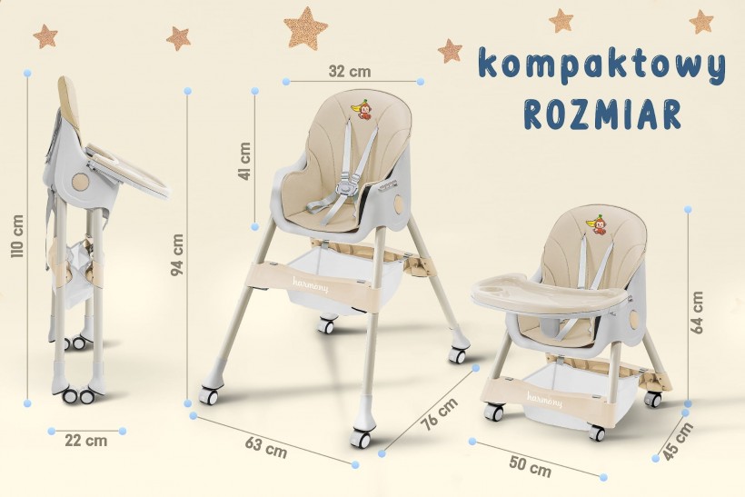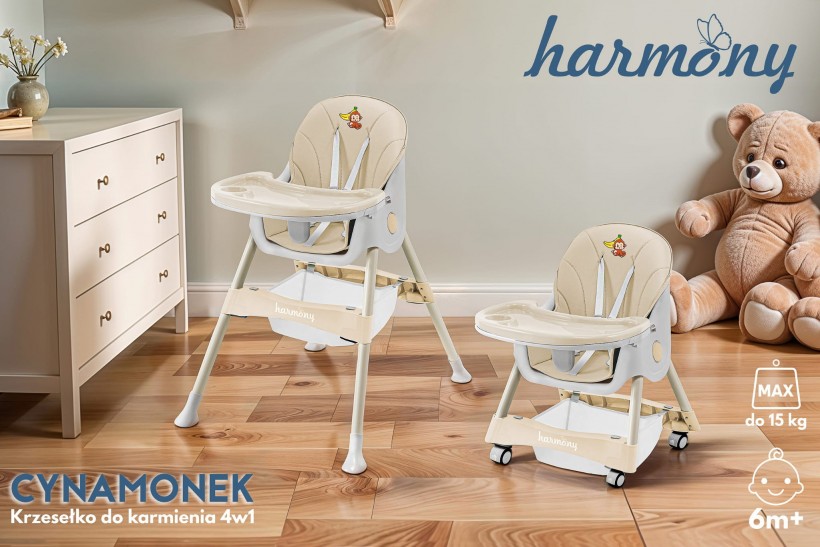 Nowe krzesełko do karmienia 4w1 HARMONY CYNAMONEK BEŻOWE.