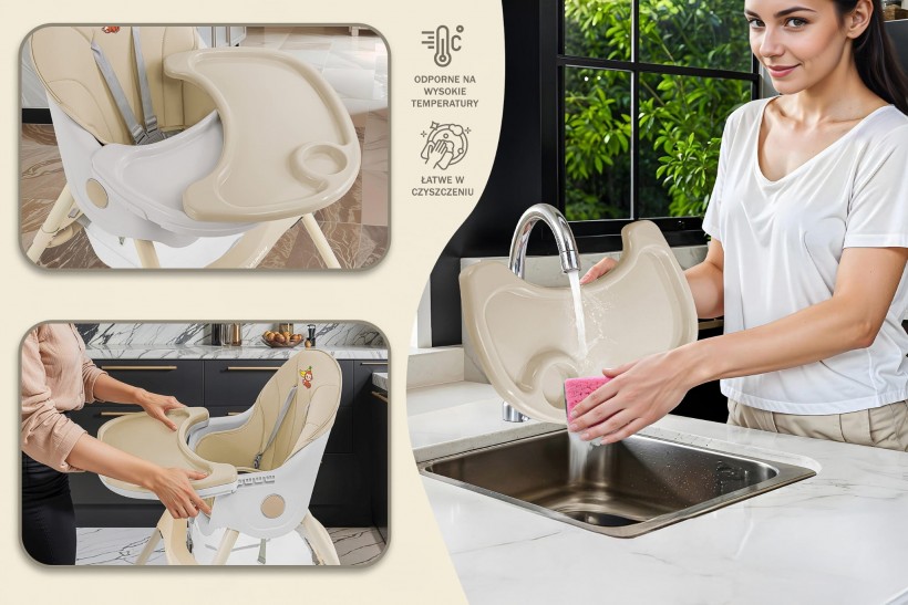 3-poziomowa regulacja tacki: Możliwość dopasowania do potrzeb zarówno dziecka, jak i rodzica.