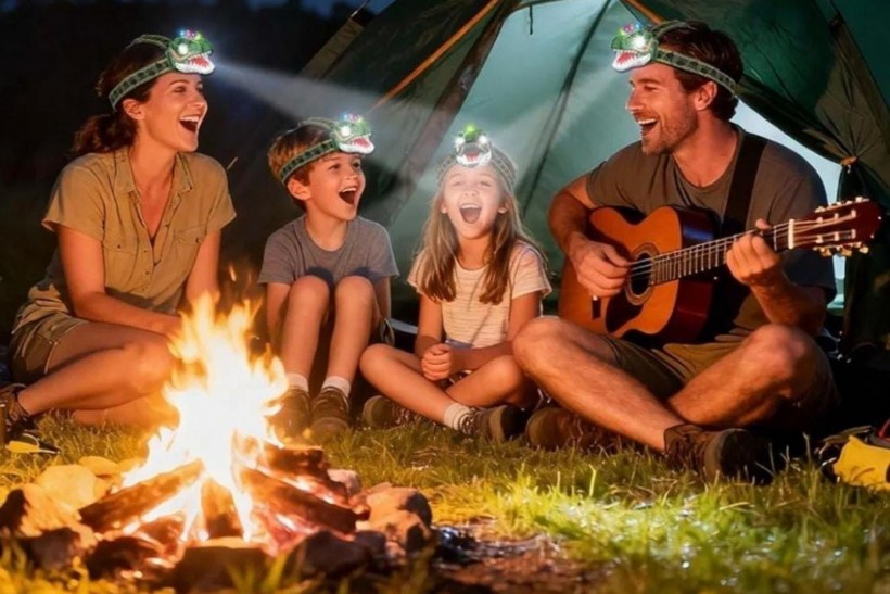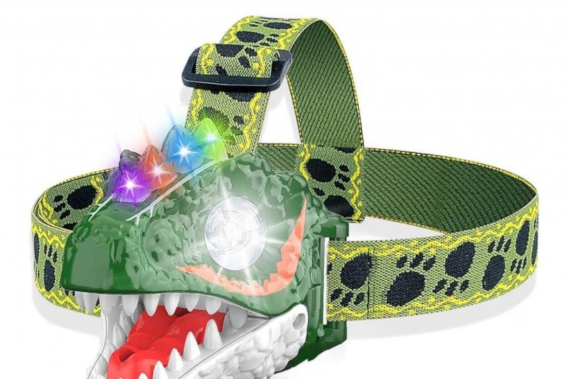 Latarka/lampa czołowa z motywem dinozaura, z 3 trybami oświetlenia, regulowanymi paskami i ryczącymi efektami dźwiękowymi!!!!
