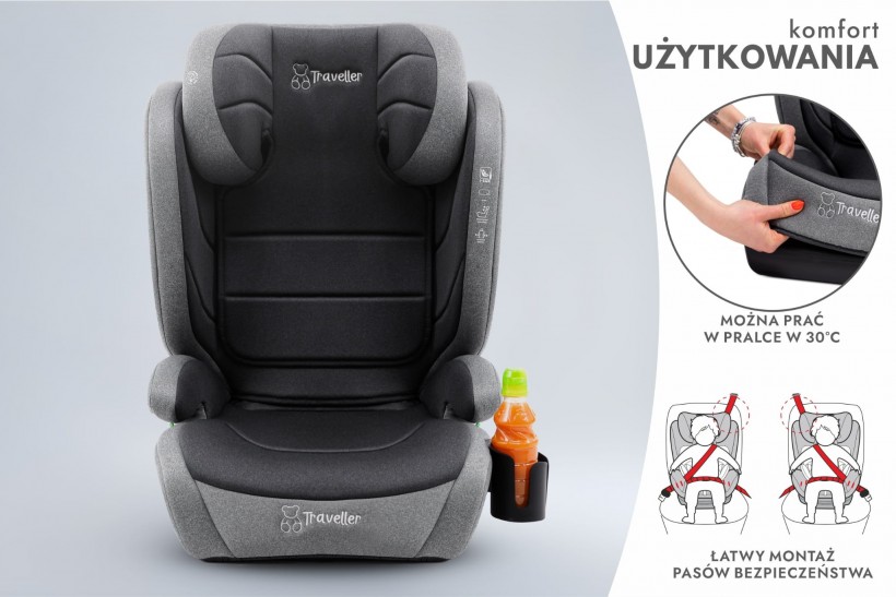 Nowy certyfikowany fotelik samochodowy ISOFIX- Traveller model ANTONIO (2 sztuki), zgodny z najnowszą normą bezpieczeństwa R129 i-Size, dla dzieci o wzroście 100-150 cm (3,5 - 12 l).