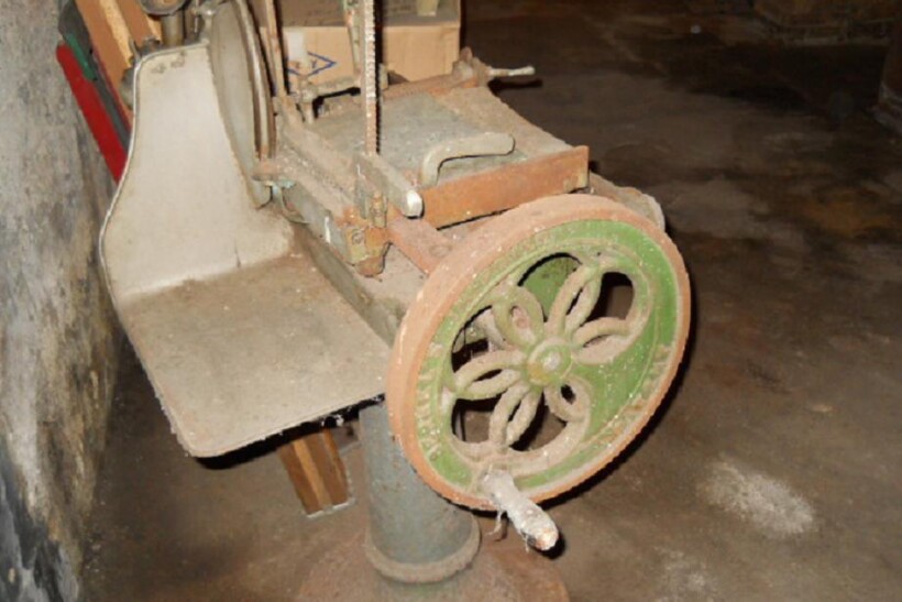 Kupie starą,zabytkową krajalnice do mięsa z kołem zamachowym na kolbe,wage sklepowa oraz inne pamiątki z przedwojennych sklepow oraz masarni.