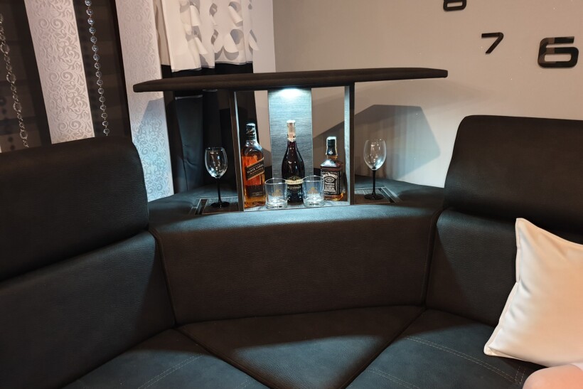 NAROŻNIK SALONOWY Z WYSUWANYM BARKIEM NA PILOTA