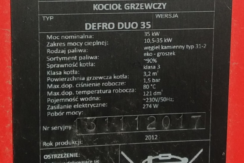 Mam do sprzedania kocioł piec DEFRO DUO 35 kw z podajnikiem zdemontowany - może być na części.