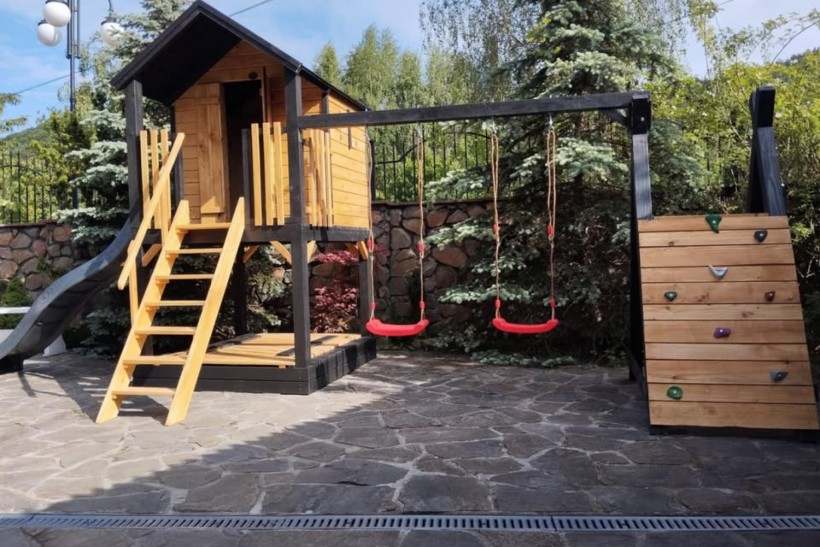 Z stelażem huśtawki plus ścianka wspinaczkowa