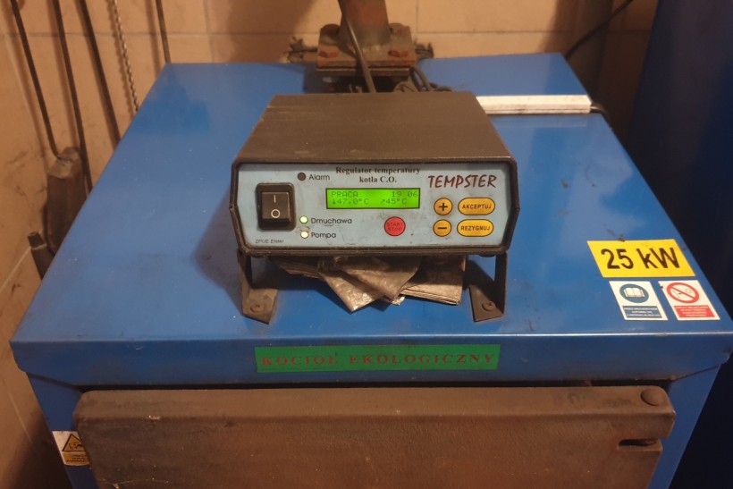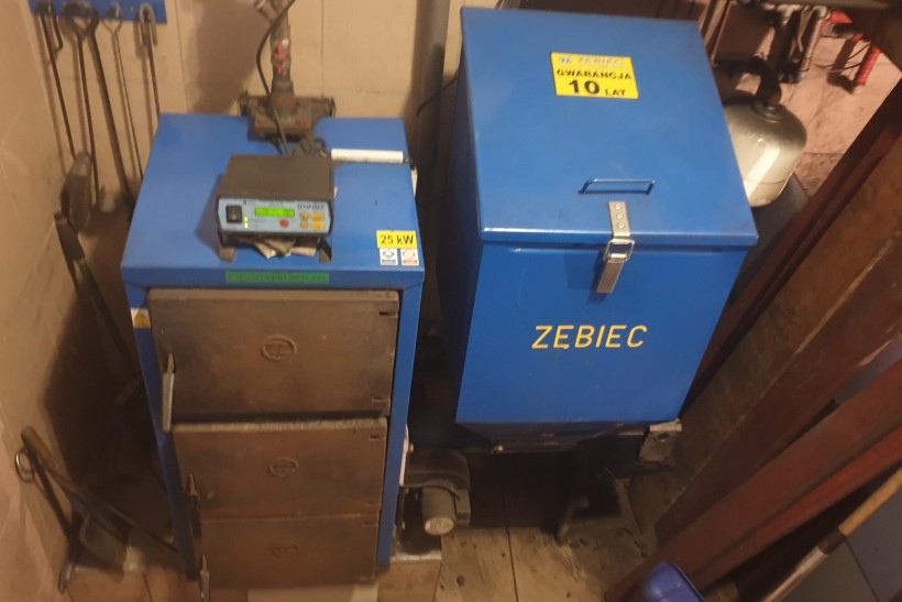 Do sprzedania używany kocioł centralnego ogrzewania - piec z podajnikiem na ekogroszek ZĘBIEC 25kW. Najmniejszy kocioł na rynku tej mocy, Zajmuje mało miejsca w kotłowni.