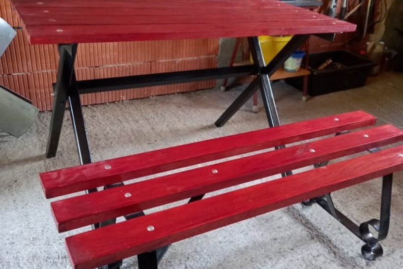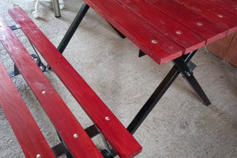 Sprzedam stolik i ławkę do ogrodu - kolor czarno-czerwony, stan widoczny jak na zdjęciach.