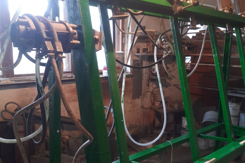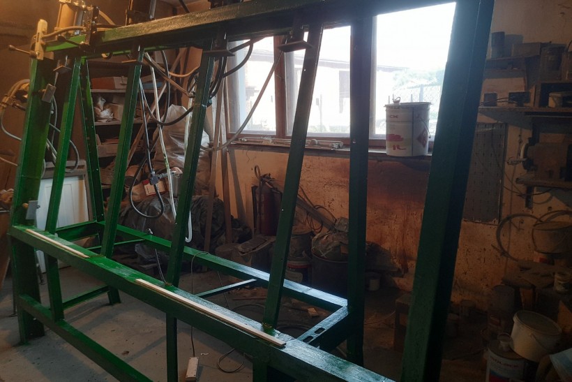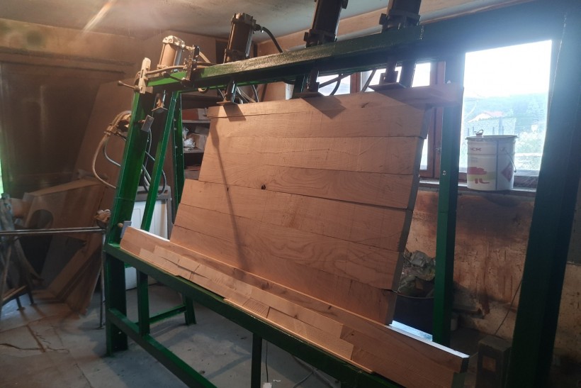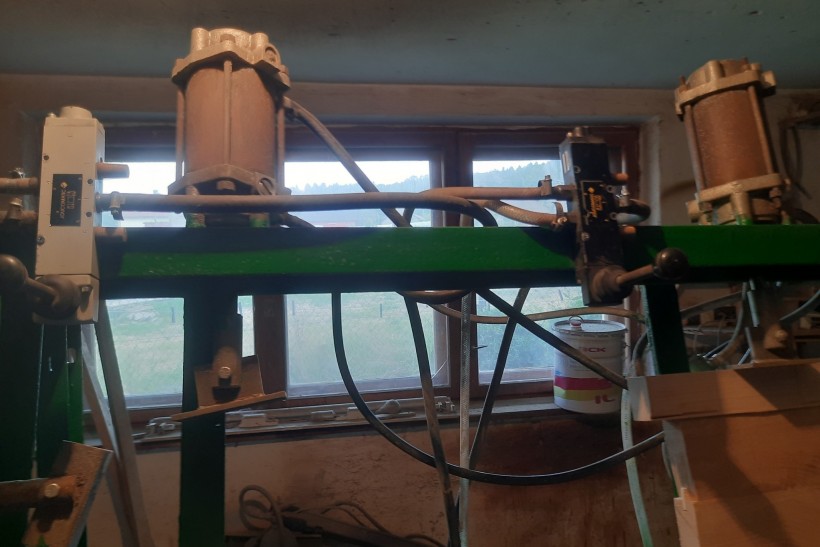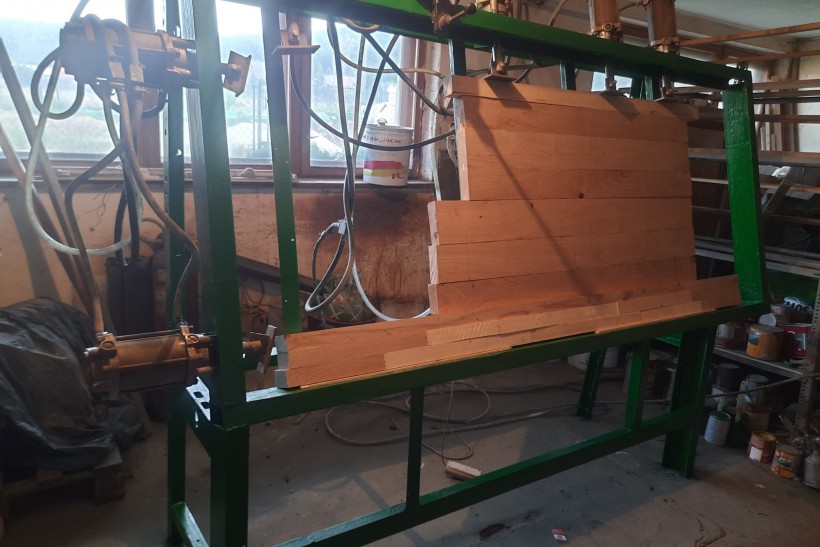 Sprzedam prasa pneumatyczna stan bdb, 4 siłowniki góra + 2 dociski boczne, pole o wymiarach 90x235. Masywna konstrukcja, duży nacisk. Idealna do klejenia schodów, drzwi, blatów.