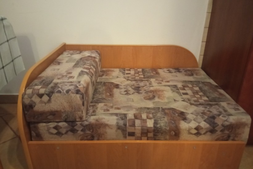 Sprzedam rozsuwany tapczan/fotel. Wymiary po złożeniu: szerokość 77 cm, długość 103 cm. Max rozsuwa się do 182 cm. Sporadycznie używany, stał nieużywany. Do odświeżenia. Kolor w tonacji brązu i beżu. Polska firma, solidnie wykonany. Można zmienić drewnuane strony oparcia. Polecam serdecznie. Transport we własnym zakresie z Myślenic.