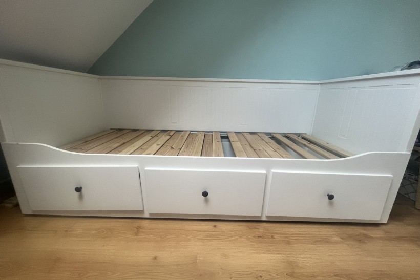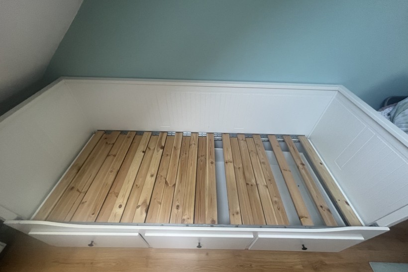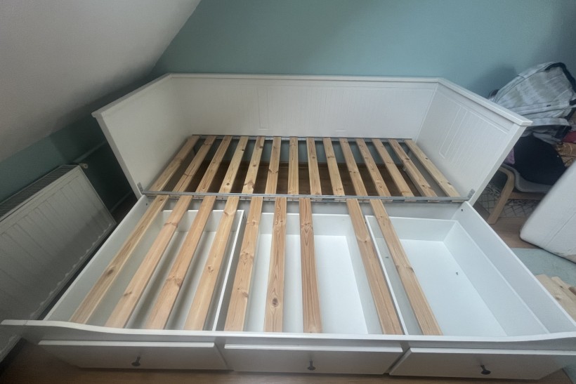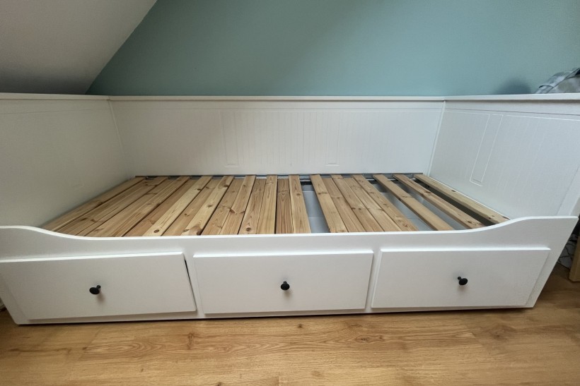 Leżanka Hemnes z 3 szufladami, 80x200 cm, stan dobry ze względu na brak czterech deseczek (można je dokupić), sprzedam pilnie, tylko odbiór osobisty z własnym transportem, zapraszam