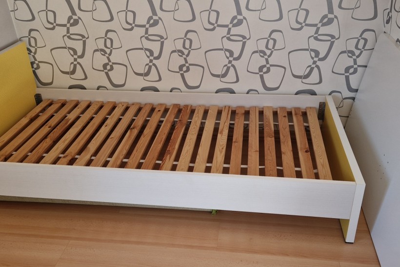 Sprzedam łóżko młodzieżowe 95x208cm kolor biało- żółty wraz z materacem.