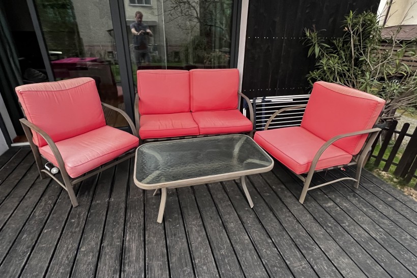 Sprzedam zestaw mebli /kanapa, dwa fotele i stolik/, który używałem na tarasie. Meble wymagają lekkiej renowacji, na ramach pojawiła się gdzie niegdzie rdza, materiał na poszyciu jest wypłowiały. Sama konstrukcja jest bardzo solidna i trwała. Możliwość negocjacji ceny. Polecam