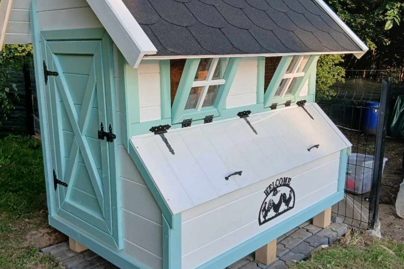 Kurnik o wymiarach podstawa 100x150, wysokość 190, wymiary dachu 130x183.