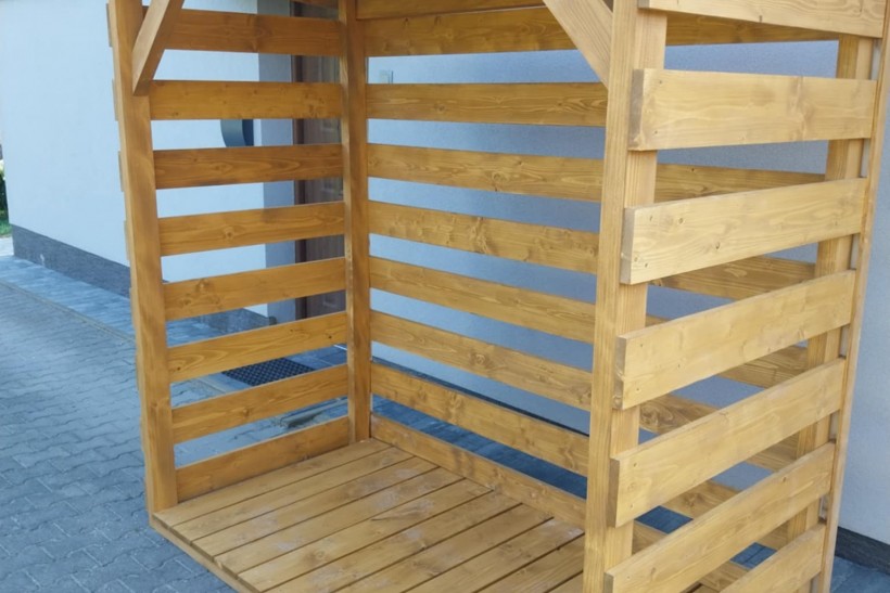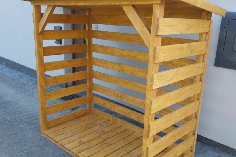 Solidna konstrukcja z drewna, która zapewnia wygodne przechowywanie i suszenie opału.