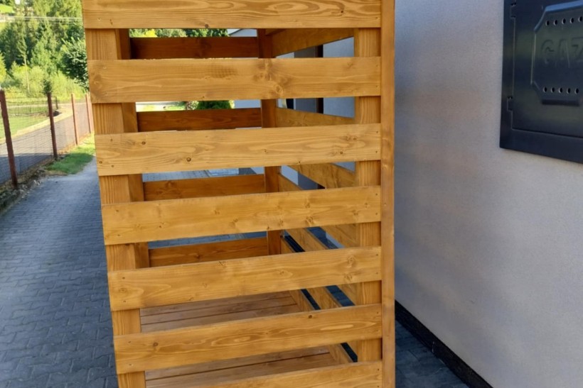 Solidna konstrukcja z drewna, która zapewnia wygodne przechowywanie i suszenie opału.