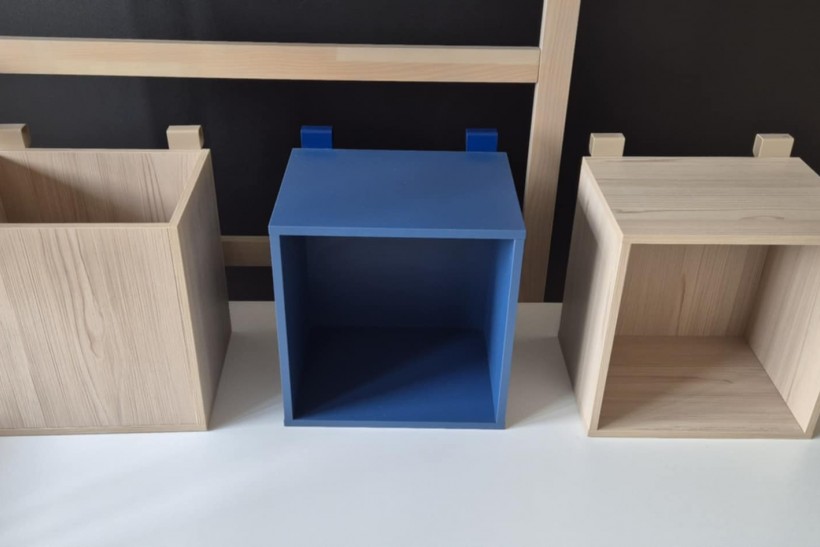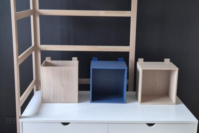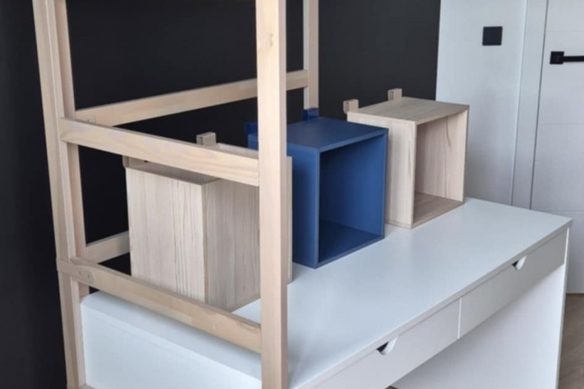 Drewniana drabinka będąca elementem konstrukcyjnym biurka może pełnić szereg praktycznych funkcji. Można zawiesić na niej kolorowe skrzynki i jeansowe organizery, które wesprą dobrą organizację. Tablica korkowa pozwoli przyczepiać notatki, a przejrzenie się umożliwi okrągłe lustro. Dobierając dedykowane akcesoria, łatwo dopasować mebel do swojego gustu i potrzeb.