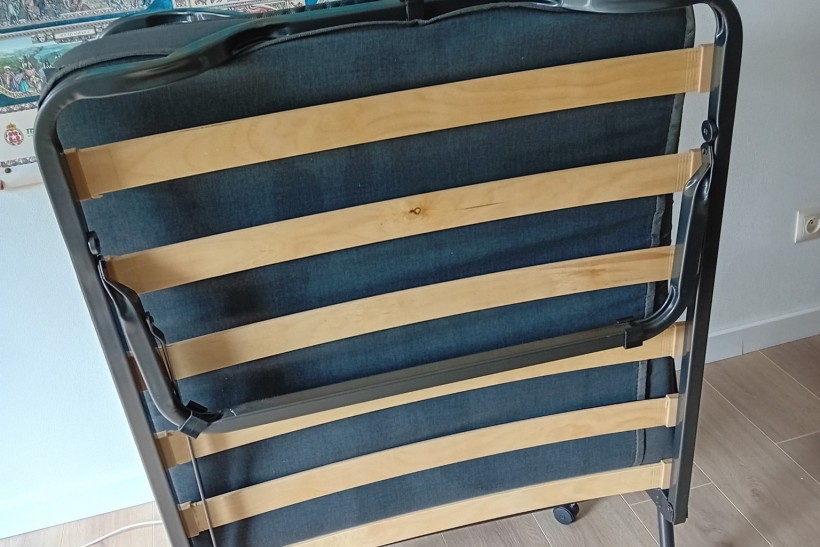 Składane łóżko na kółkach o wymiarach 200x80 cm. Praktyczne rozwiązanie, które pozwala na wygodne przechowywanie i transport mebla. Doskonale sprawdzi się w małych mieszkaniach lub jako dodatkowe miejsce do spania.