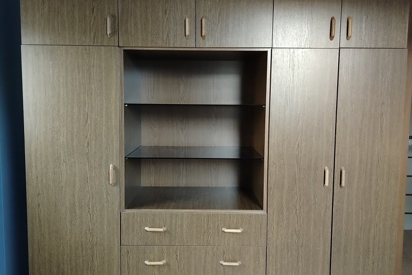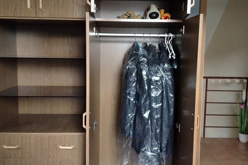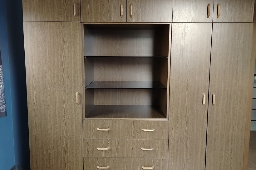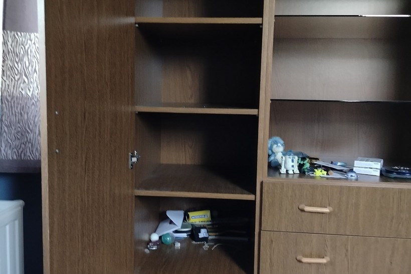 Oddam meble/meblościanka, wymiary wysokość 220 cm, szerokość 200 cm, głębokość 58 cm. Składają się z trzech elementów: szafa szer. 70 cm, regał z otwartymi półkami szer. 80 cm, regał z zamkniętymi półkami szer. 50 cm. Transport własny.