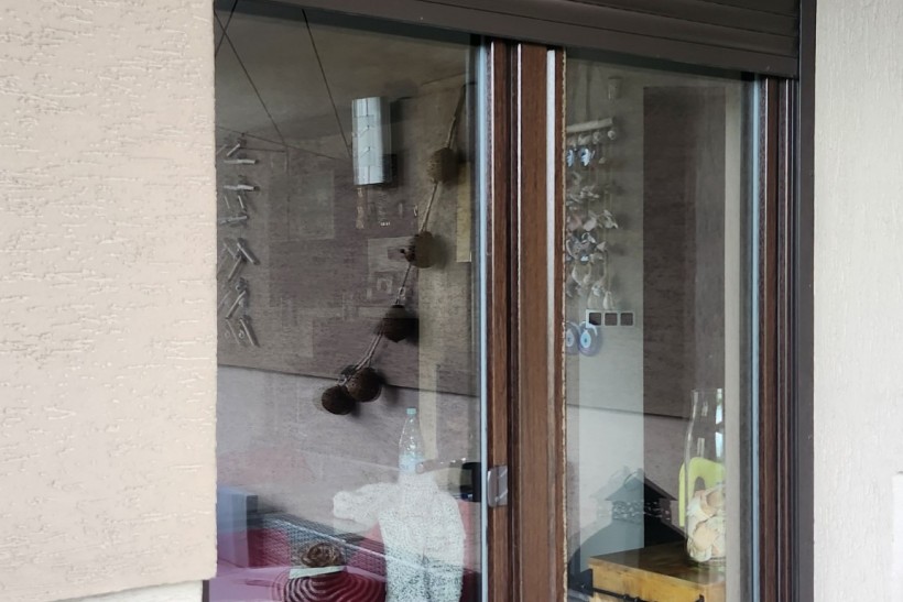 Używane okno tarasowe dwuskrzydłowe JEZIERSKI z roletą zewnętrzną ROLETEX do sprzedaży na ścianę. Wymiar 235 wysokość x 150 szerokość, Okno PCV, kolor dwustronny ciemny brąz - orzech, wyposażone w rolety zewnętrzne, które zapewniają dodatkową ochronę i prywatność. Idealne rozwiązanie do modernizacji lub remontu domu lub tarasu.