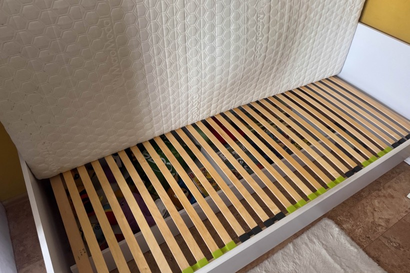 Używane przez około dwa lata, posiada małe ślady użytkowania, materac czysty, niewygnieciony.