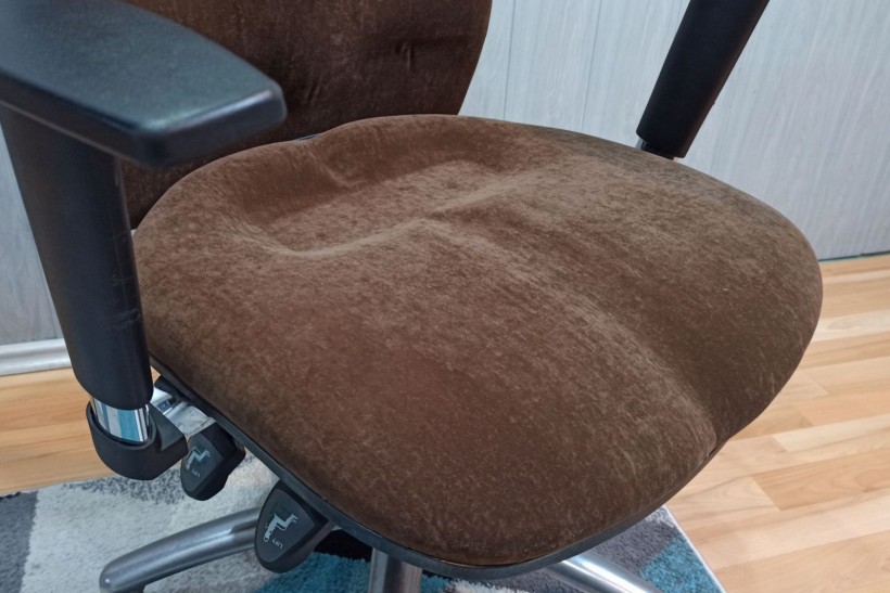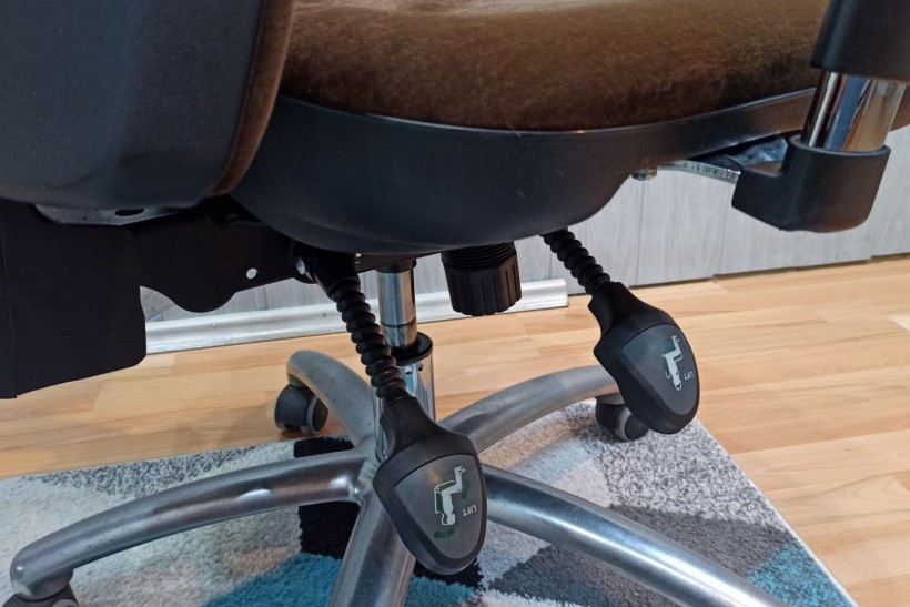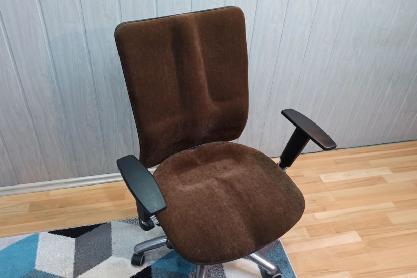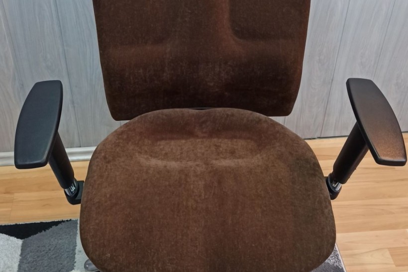 Wygodne krzesło obrotowe z welurowym tapicerowaniem, posiadające właściwości rehabilitacyjne i dbające o prawidłowe ułożenie kręgosłupa przy pozycji siedzącej, dzięki czemu plecy nie bolą nawet po wielu godzinach. Szeroka regulacja w wielu płaszczyznach pozwala dopasować fotel do każdej sylwetki (m.in. siedzisko przód-tył, podłokietniki góra-dół). Ślady użytkowania widoczne na zdjęciach, mechanizmy i kółka sprawne. Odbiór osobisty w Myślenicach, możliwy transport za dopłatą. Cena nowego to 1519zł.