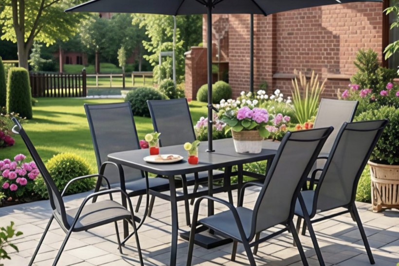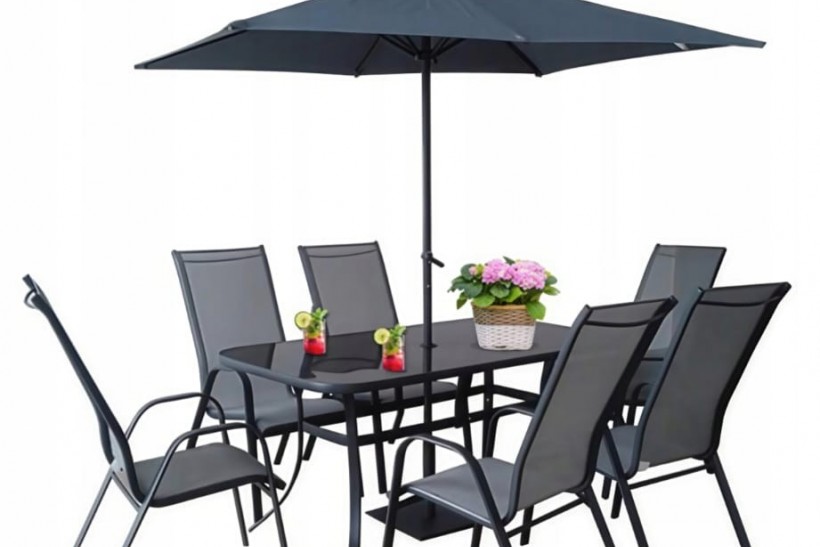 Oferujemy nowoczesny i wygodny zestaw ogrodowy 6-osobowy, składający się z 9 elementów: