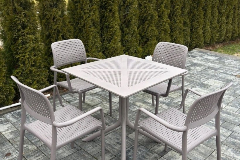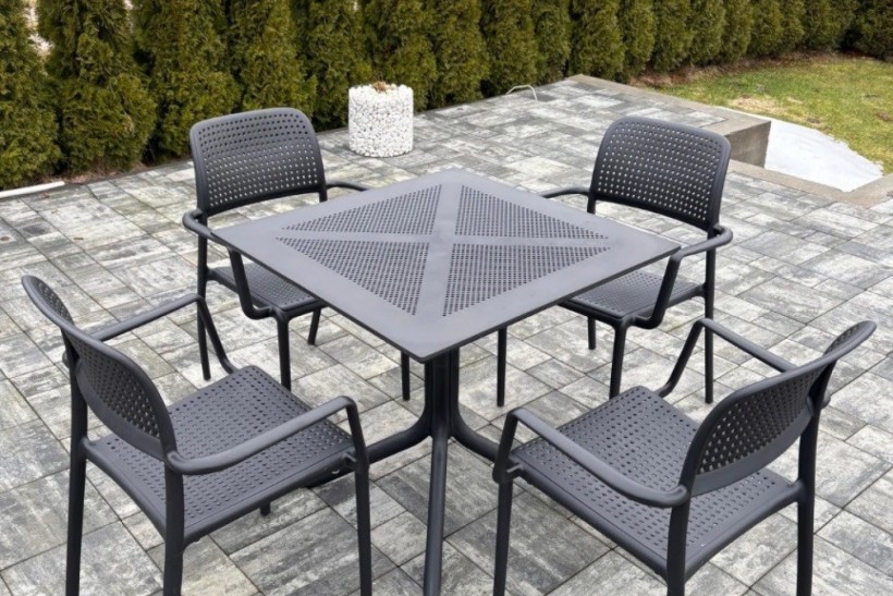Nasze komplety ogrodowe zostały wykonane z wysokiej jakości technopolimeru (polipropylen wzmacniany włóknem szklanym), dzięki czemu są odporne na warunki atmosferyczne i intensywne użytkowanie – zarówno w przestrzeniach prywatnych, jak i komercyjnych.