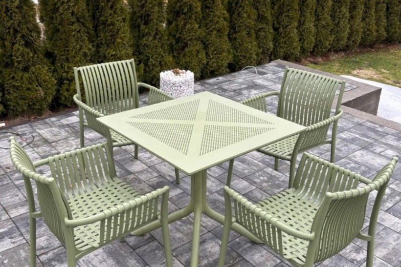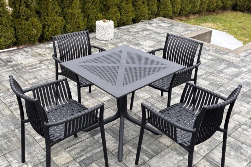 Nasze komplety ogrodowe zostały wykonane z wysokiej jakości technopolimeru (polipropylen wzmacniany włóknem szklanym), dzięki czemu są odporne na warunki atmosferyczne i intensywne użytkowanie – zarówno w przestrzeniach prywatnych, jak i komercyjnych.