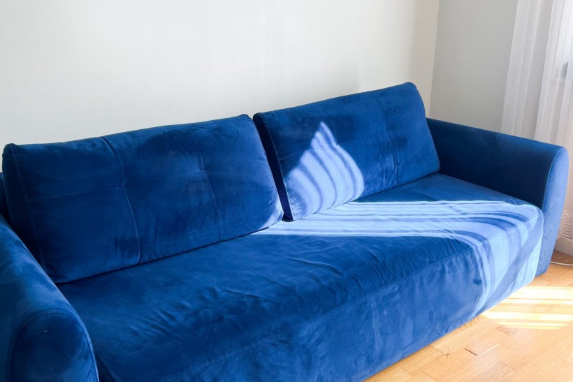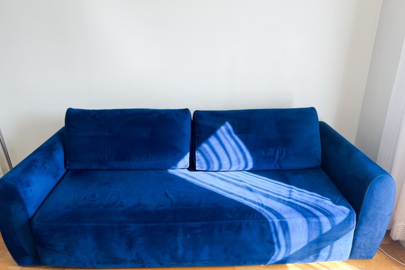 Na sprzedaż wygodna sofa w kolorze granatowym, wykonana z przyjemnego w dotyku weluru. Sofa jest rozkładana i posiada funkcję spania, dzięki czemu świetnie sprawdzi się zarówno w salonie, jak i w pokoju gościnnym.