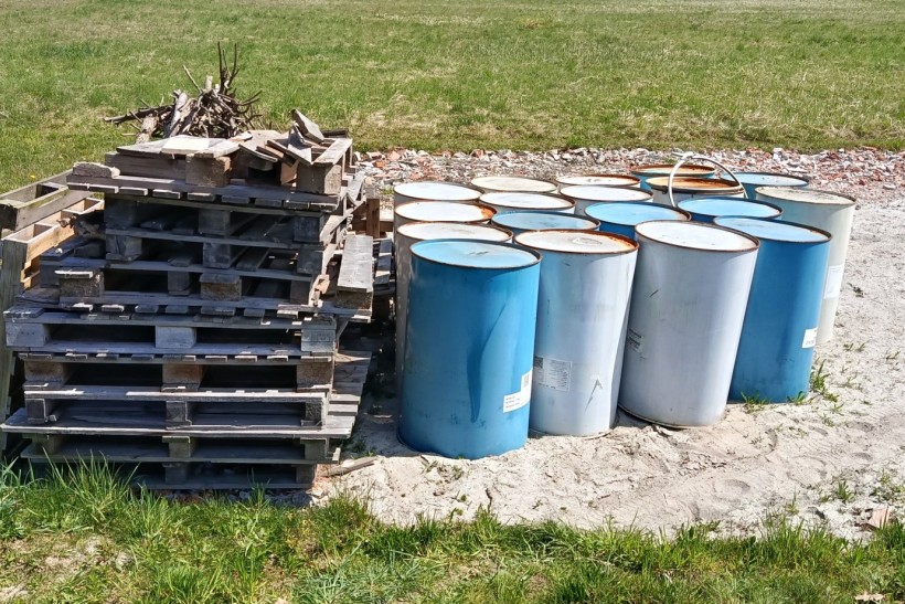 Oddam za darmo to co na zdjęciach - kilkanaście pustych beczek stalowych oraz drewno: palety, deski, gałęzie - tylko całość.