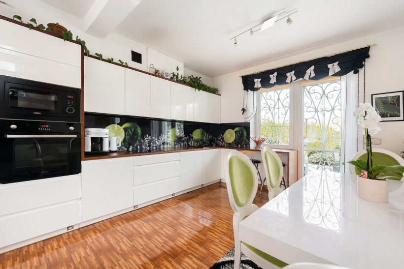 Nieruchomość ma powierzchnię użytkową 160 m2. Do tego dochodzi garaż, tarasy, weranda, podpiwniczenie pod połową domu, co daje w sumie około 350 m2 powierzchni całkowitej. Pod domem oprócz miejsca na samochód w garażu znajduje się również miejsce na 2 kolejne samochody.