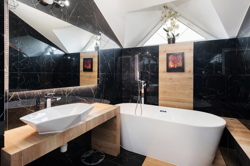 • podłogi na piętrze: płytki gresowe i parkiet w pokojach