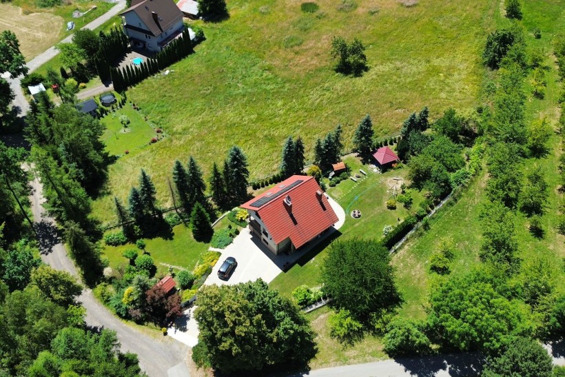 Ogromnym atutem nieruchomości jest jej położenie – cicha i spokojna okolica gwarantuje prywatność i relaks z dala od miejskiego zgiełku, jednocześnie zapewniając szybki dostęp do infrastruktury – szkoła i przedszkole znajdują się zaledwie 1 km od domu.