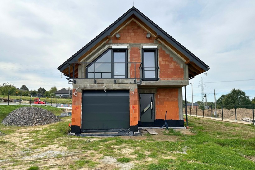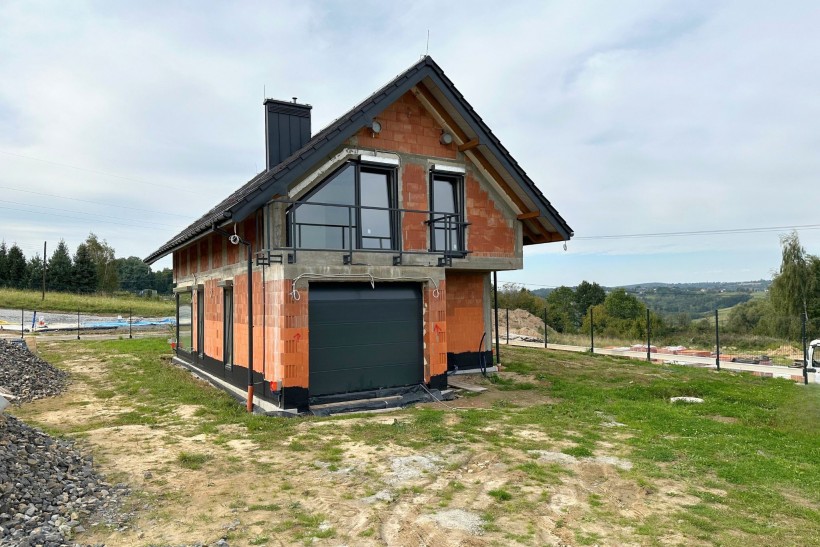 Na sprzedaż dom w stanie surowym zamkniętym na 12,35 ar działce na osiedlu 3 domów jednorodzinnych w Stojowicach, w gminie Dobczyce.