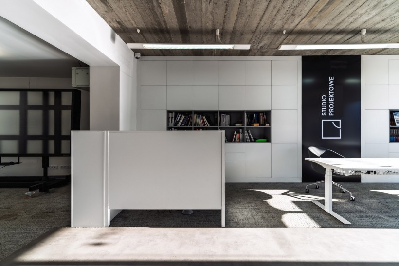 Lokal jest kilkuletni, urządzony i gotowy do użytkowania. Wnętrze utrzymane w minimalistycznym, loftowym stylu, z autentycznym sufitem z betonu architektonicznego (nie imitacja), tworzy nowoczesne, profesjonalne tło dla działalności usługowej lub biurowej. Przemyślane zabudowy na wymiar oferują dużą ilość miejsca do przechowywania – idealne na dokumentację, archiwum czy zaplecze techniczne. Do dyspozycji jest również w pełni wyposażony aneks kuchenny (m.in. zmywarka) oraz osobna toaleta.