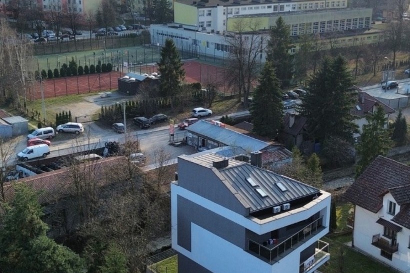 Działka budowlano-usługowa w centrum Myślenic z prawomocnym pozwoleniem na budowę budynku mieszkalnego jednorodzinnego z częścią usługową przy ul. Średniawskiego w pierwszej linii zabudowy. Zaledwie 500 m od Rynku.