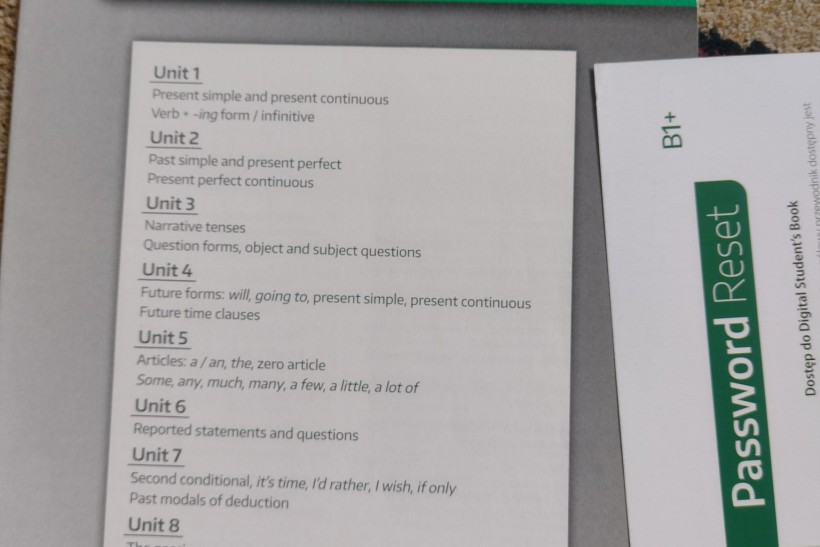 Sprzedam używany podręcznik Password Reset B1+ wraz z kompendium gramatycznym oraz kodem dostępu do internetowego podręcznika. Książka w stanie bardzo dobrym, czysta w środku.